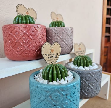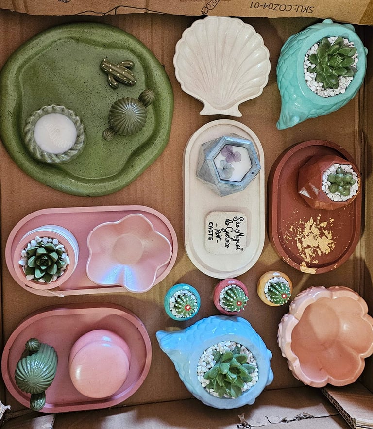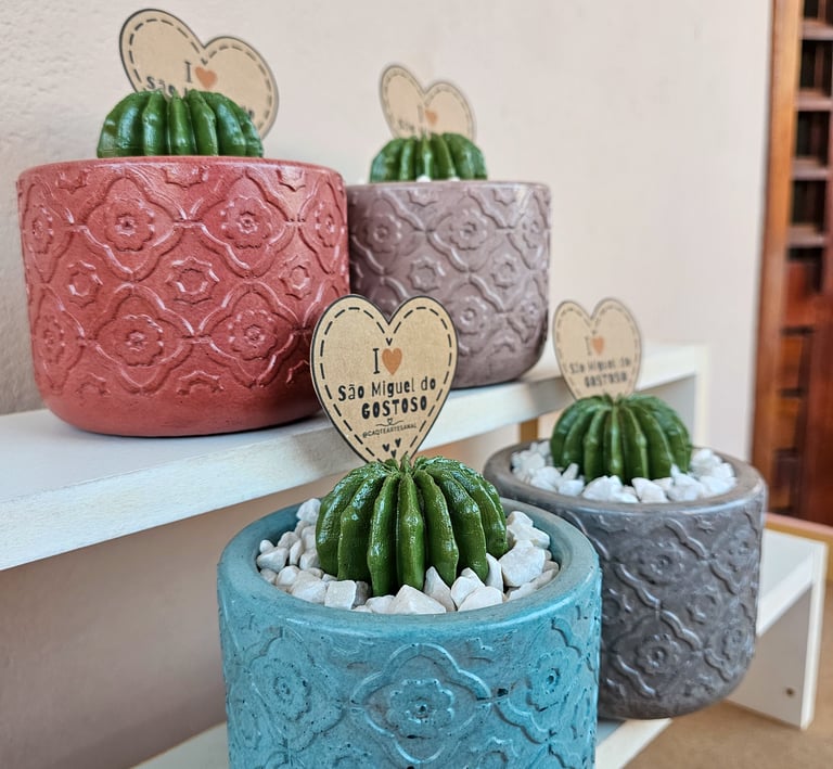 Peças únicas em cimento feitas à mão com carinho e cuidado.