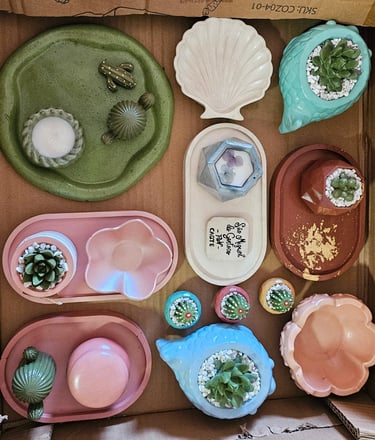 Cada peça de cimento é criada por mim, uma arquiteta apaixonada pela arte e pelo mar, direto da praia para sua casa.
