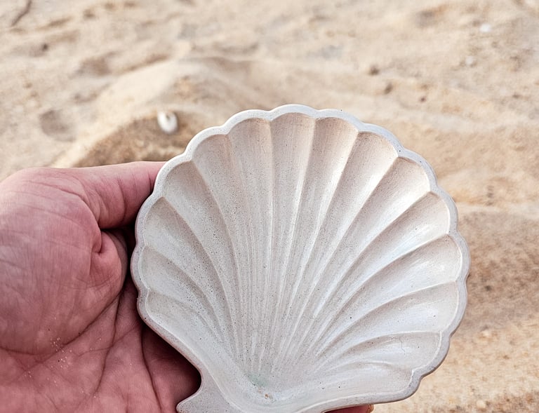 Cada peça de cimento é criada por mim, uma arquiteta apaixonada pela praia e pelo artesanal.